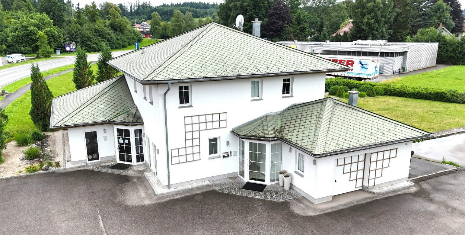 Am Ortsrand von Vöcklamarkt, direkt an der L1287 „Pfaffinger Straße“, steht auf dem 1.765 m² großen Grundstück großes Wohn- und Geschäftshaus in einem Mischgebiet zum Verkauf. Das Grundstück besteht aus zwei Bauparzellen und ließe im Westen auch noch eine großzügige Erweiterung oder aber auch einen weiteren Neubau eines Objektes zu.